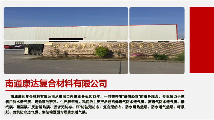 “科德邦”防水透氣膜已通過(guò)國(guó)外CE認(rèn)證,獲得ISO92001:2000產(chǎn)品質(zhì)量認(rèn)證,防水協(xié)會(huì)證書(shū),鋼結(jié)構(gòu)協(xié)會(huì)證書(shū),第三方檢測(cè)報(bào)告,獲得“南通品牌產(chǎn)品”稱(chēng)號(hào),中國(guó)防水協(xié)會(huì)特批“標(biāo)準(zhǔn)實(shí)驗(yàn)室”。您可放心購(gòu)買(mǎi),亦可隨時(shí)送檢!!