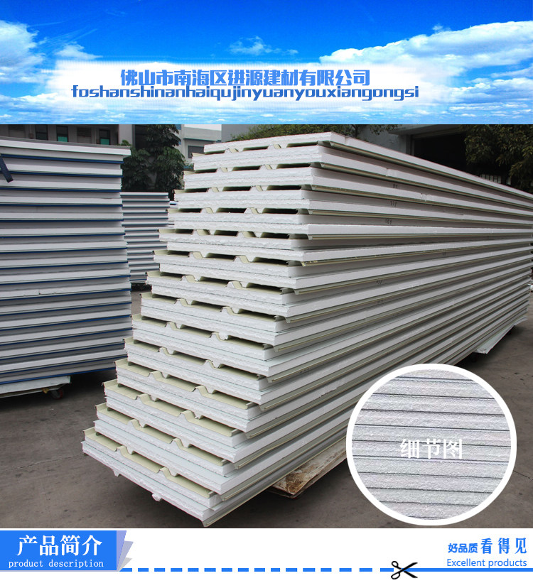 佛山市進(jìn)源建材有限公司專(zhuān)業(yè)生產(chǎn)銷(xiāo)售各種彩鋼夾心板,夾芯瓦,圍壁板,巖棉彩鋼夾芯板,層隔熱夾芯板及其配件。營(yíng)銷(xiāo)網(wǎng)絡(luò)遍布全國(guó)各地。