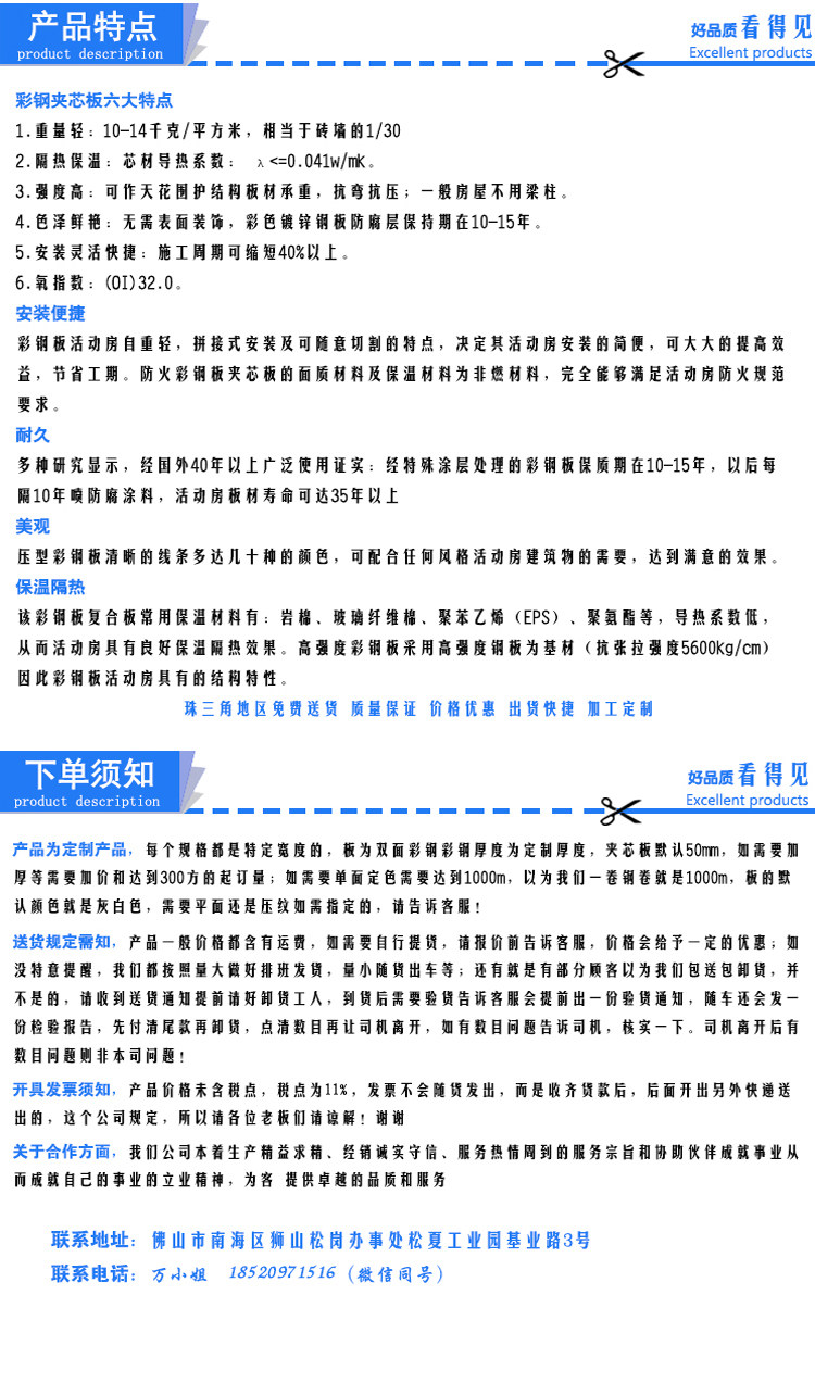 彩鋼厚度:0.13-0.8mm 防火等級(jí):B級(jí)阻燃